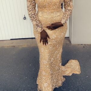 Possibilité de resserrer mais non d’agrandir, porter 1 fois. Dos plongeant + traîne