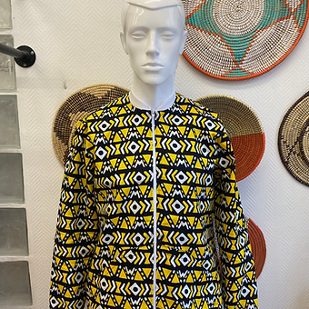 Motif réalisé à partir de tissus Wax, ce bomber est un ajout unique à votre garde-robe.