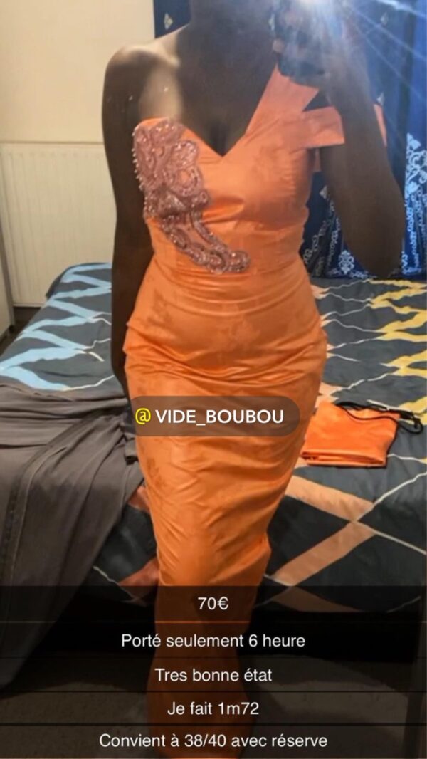 couleur : orange , je fais 1m72 , convient à une taille 38/40 avec réserve , trés bon état , portée 6 heures