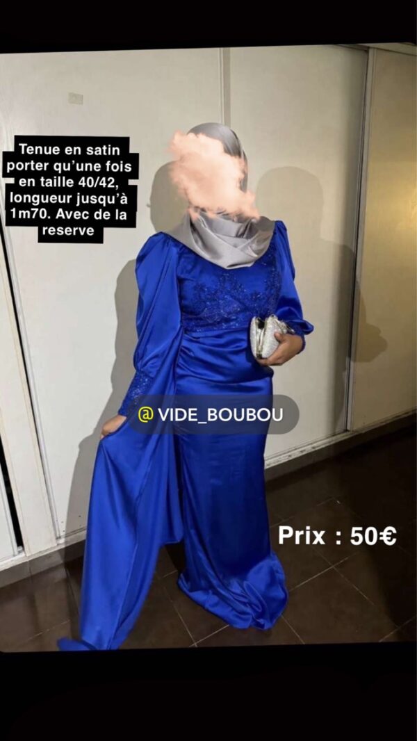 Tenue en satin porter qu’une fois en taille 40/42, longueur jusqu’à 1m70. Avec de la reserve