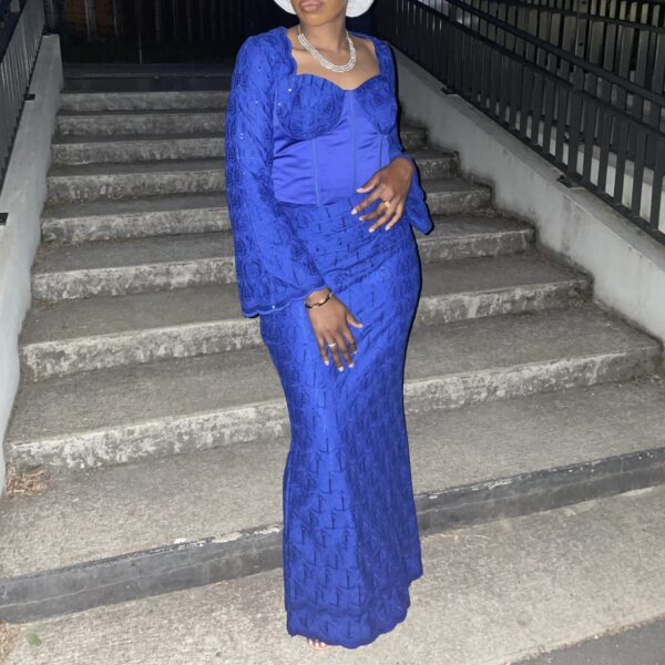 Belle robe bleue brodée avec corset Taille 38/40 Convient jusqu’à 1m75
